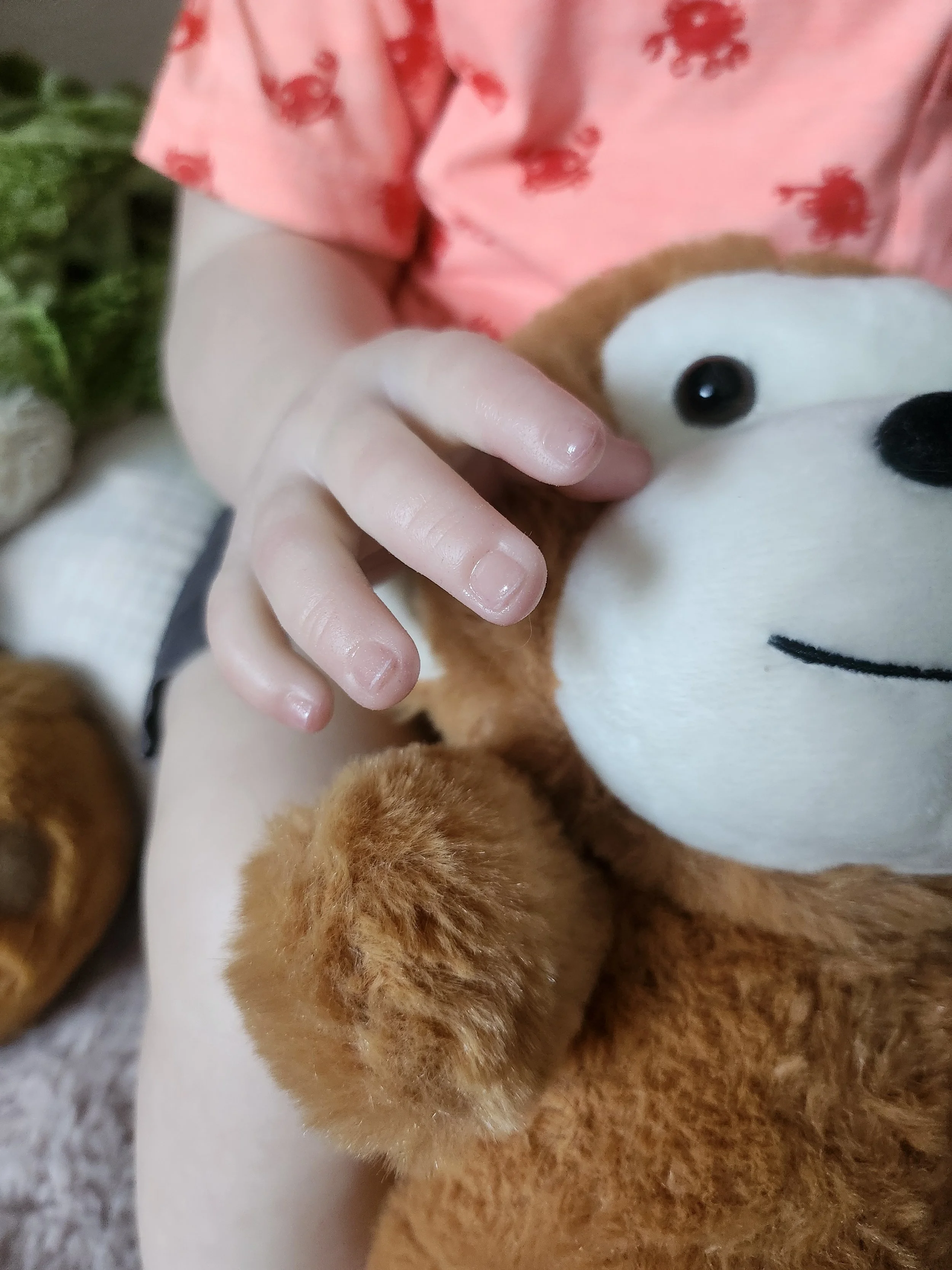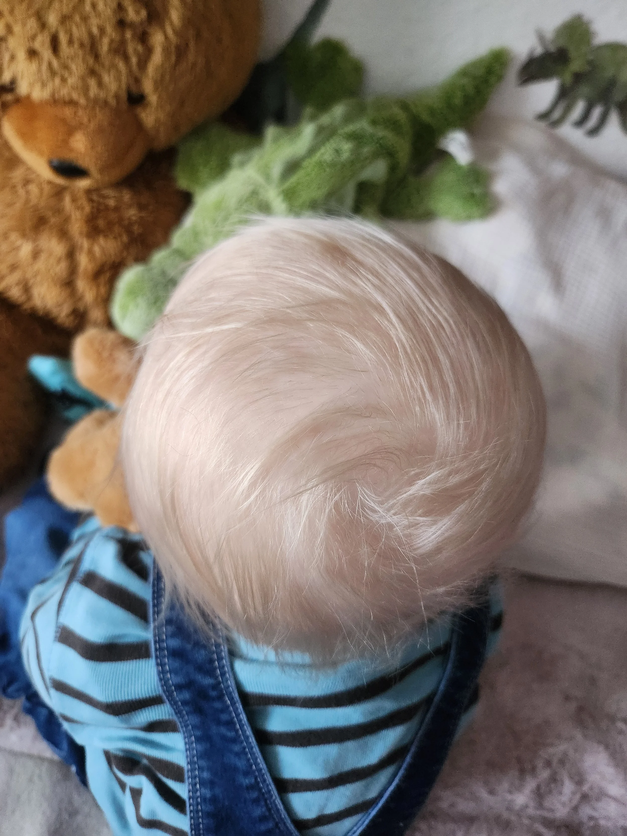 Wenn sich Staub in dem Mund, den Augen oder den Speckfalten festgesetzt hat, verwenden sie einen weichen Pinsel und streichen sie sanft den Staub heraus. Bei stark festsitzendem Staub können sie den Pinsel auch mit etwas klarem Wasser benetzen und leicht drüber gehen. NICHT SCHRUBBEN! Tauchen Sie Reborn-baby jedoch nie vollständig in ein Wasserbad, die Füllung könnte Schaden nehmen.
